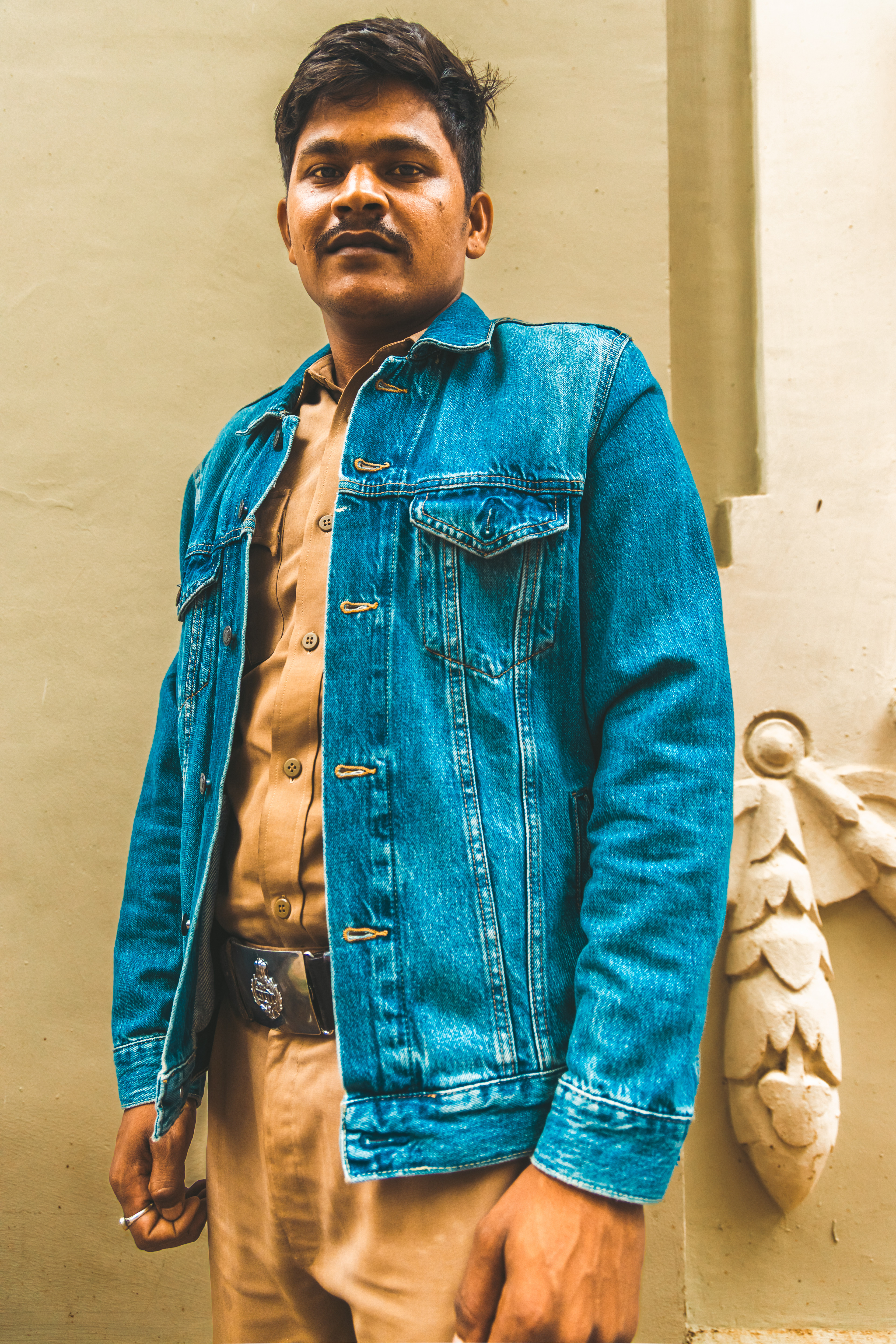 A single denim jacket moving through Mumbai.