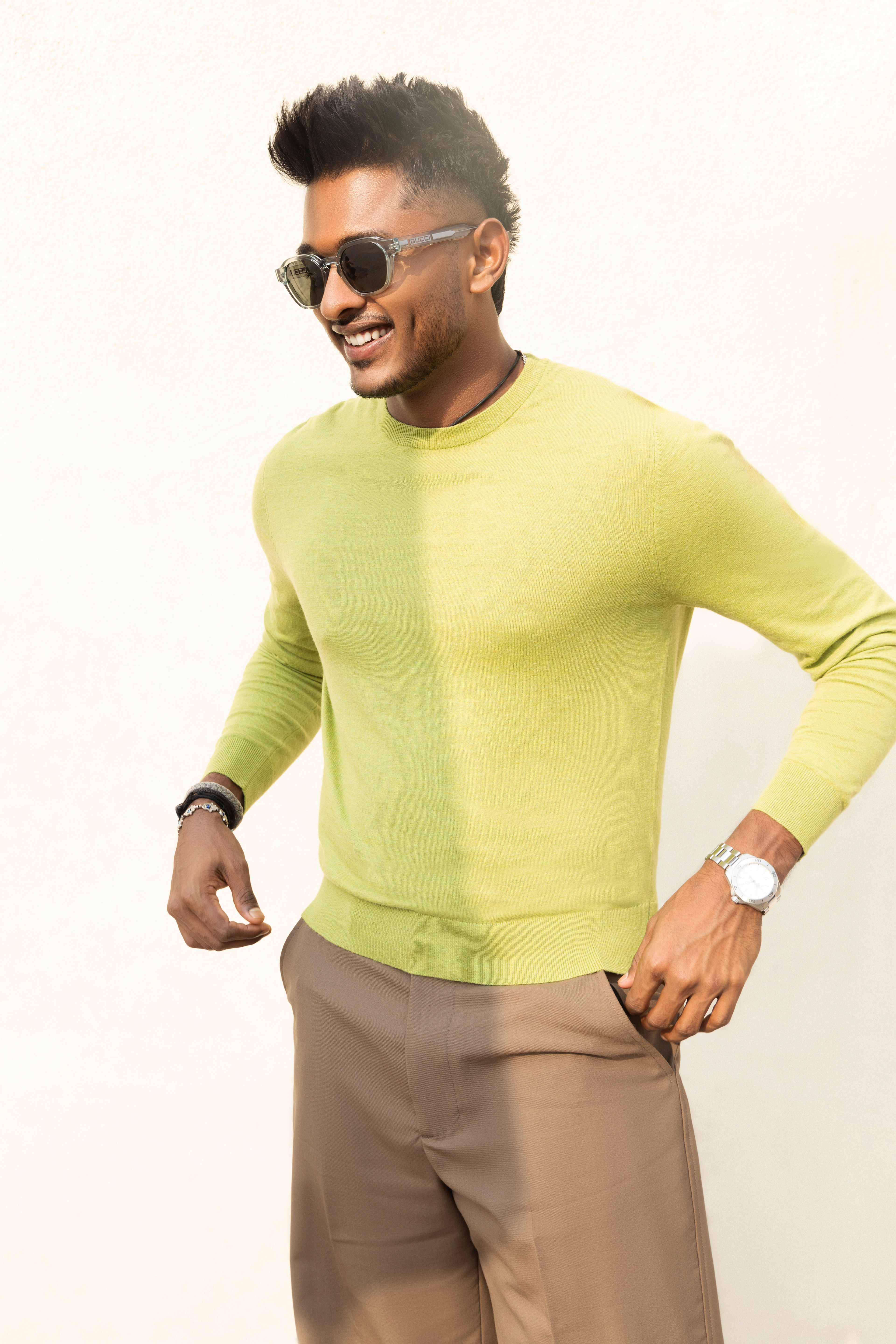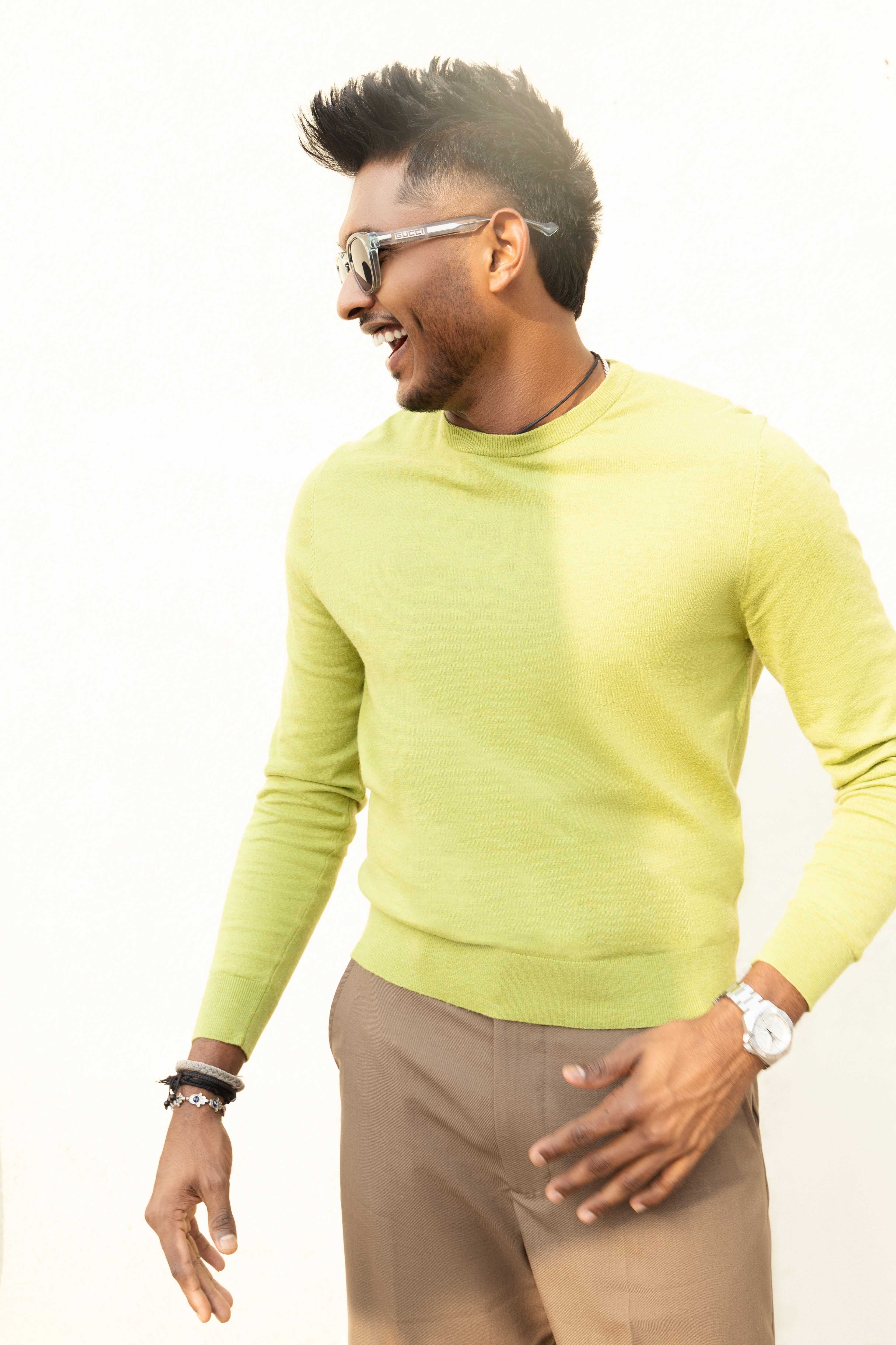 We wanted to showcase him in his natural element, so we began with two outdoor looks in soft natural light easy, effortless, and true to who he is. The final look was a sharp shift in tone: a powerful, editorial-style setup in a suit and glasses, designed like a magazine cover moment.